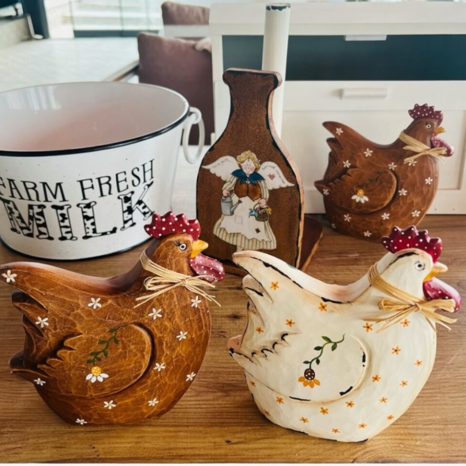 Country Polyester Tavuk Obje Eskitme Beyaz