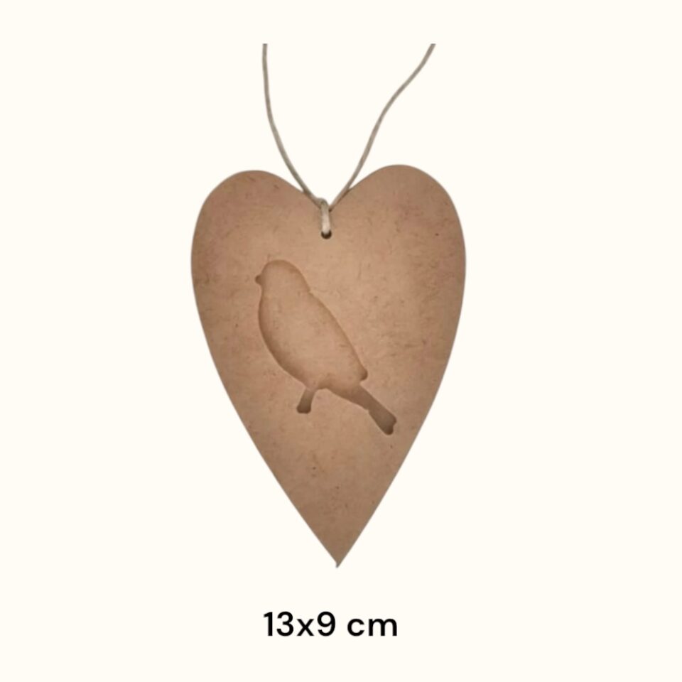 Ham Mdf Kuşlu Kalp Obje HE-329